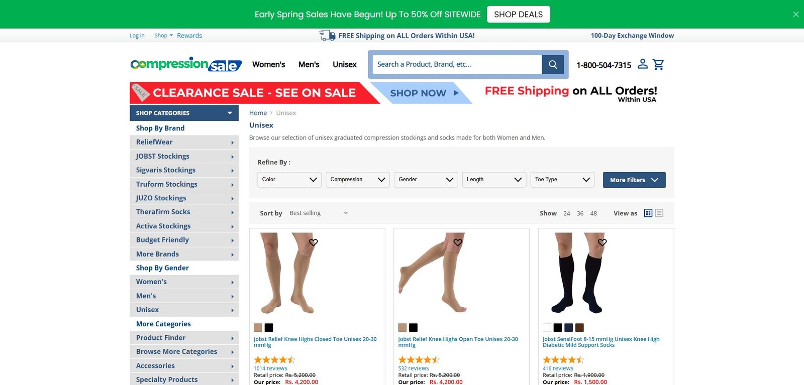 Website developed for Compression Sale, an online store specializing in compression socks, stockings, sleeves, and wraps from leading brands. Built using Shopify for secure transactions, easy navigation, and a user-friendly shopping experience.