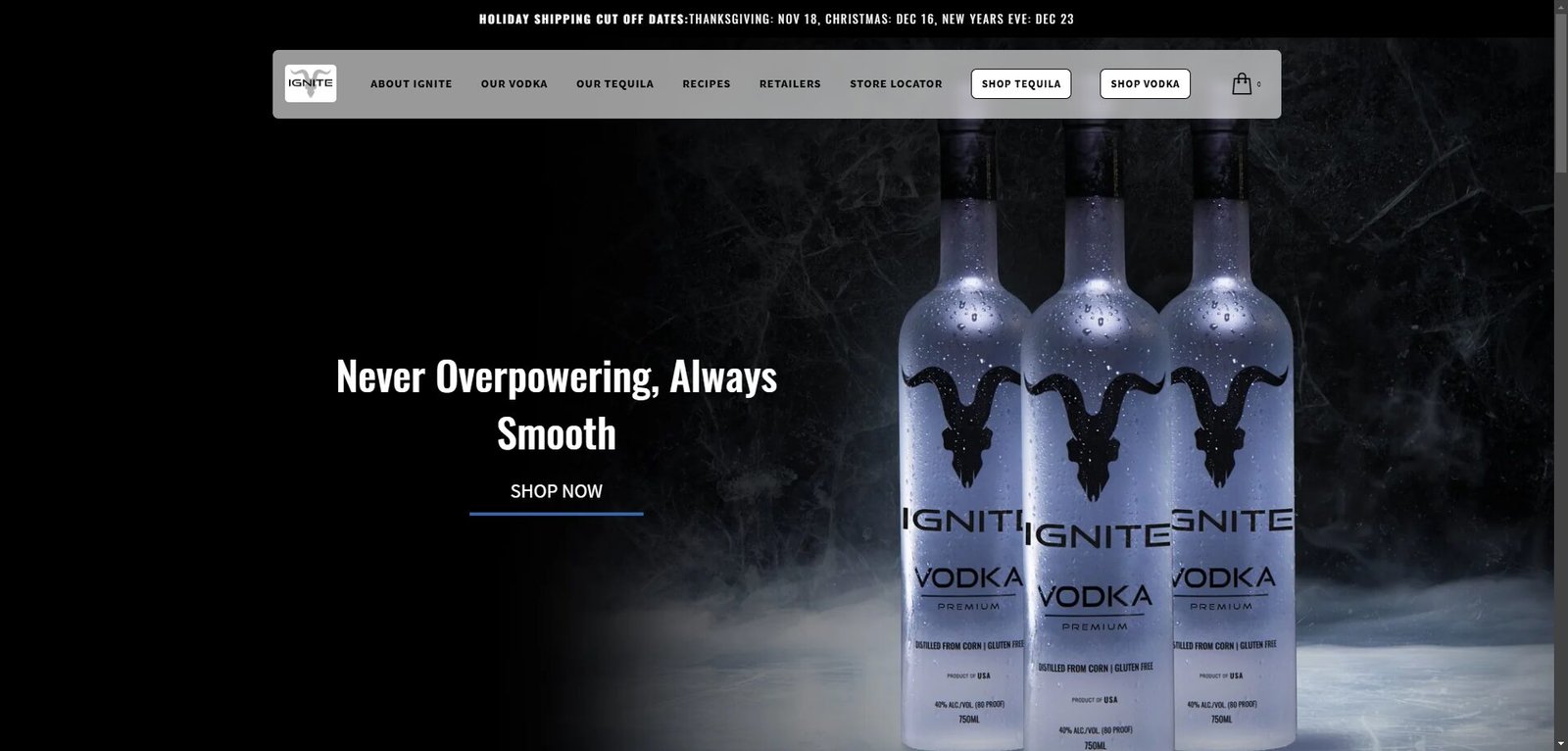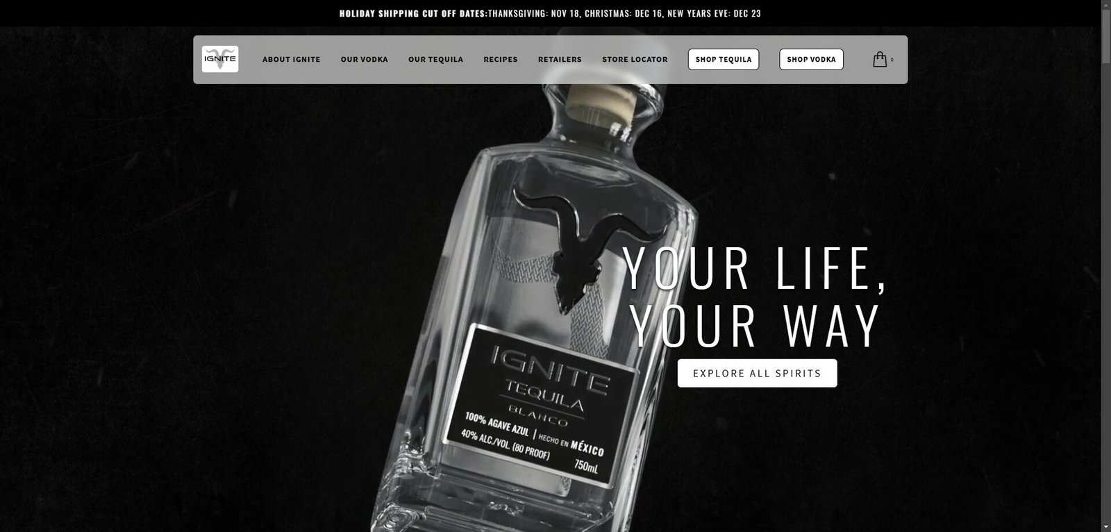 Ignite Spirits Co., a premium lifestyle and spirits brand known for its bold identity and high-end products. This project involved designing a sleek, immersive eCommerce experience that aligned with the brand’s edgy, modern aesthetic. We built the site on Shopify, with custom sections, full mobile responsiveness, and a focus on visual storytelling. Key features include smooth product navigation, lifestyle-driven imagery, and a performance-optimized storefront built to scale. The result is a bold digital presence that drives conversions and reinforces the brand’s luxury appeal.